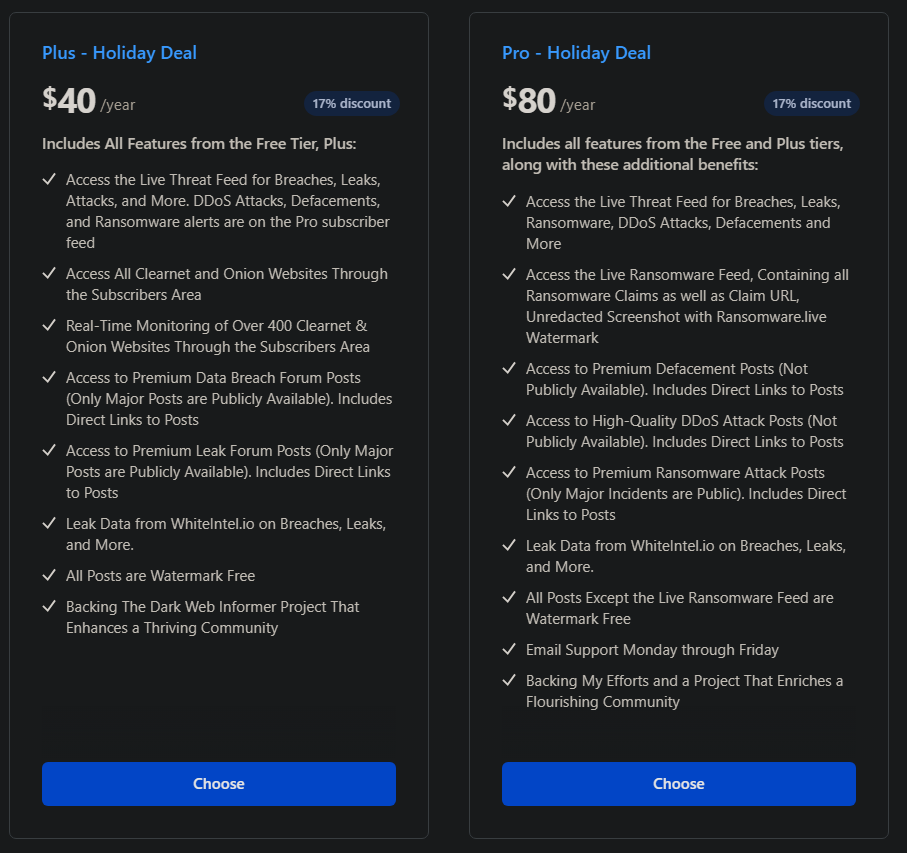 When the Holiday Sale is over subscriptions are available for the PLUS tier at $5 per month or $50 per year, and for the PRO tier at $10 per month or $100 per year.