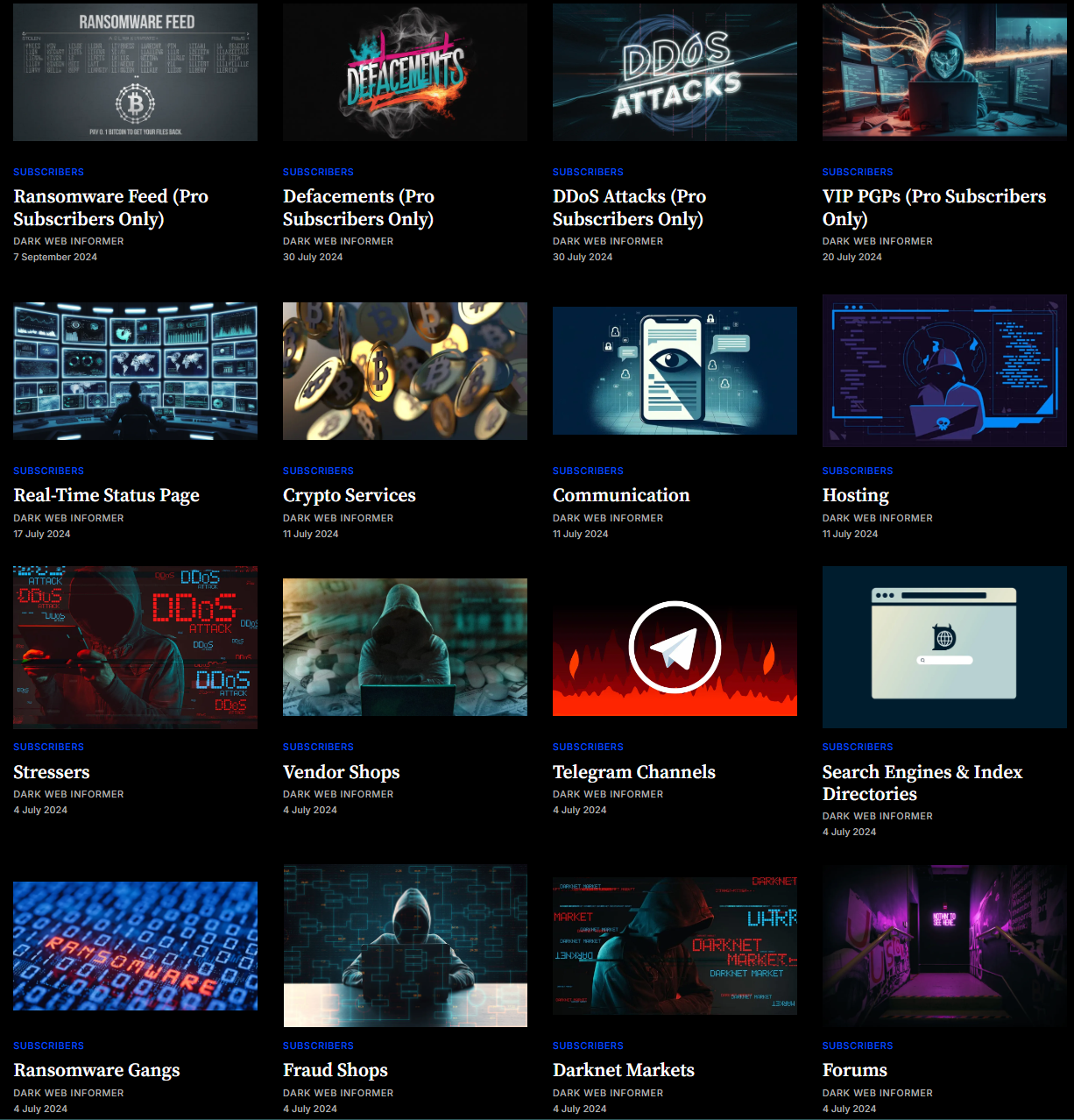 ⚠️= Announcements, Dark Web, Forums, Shops