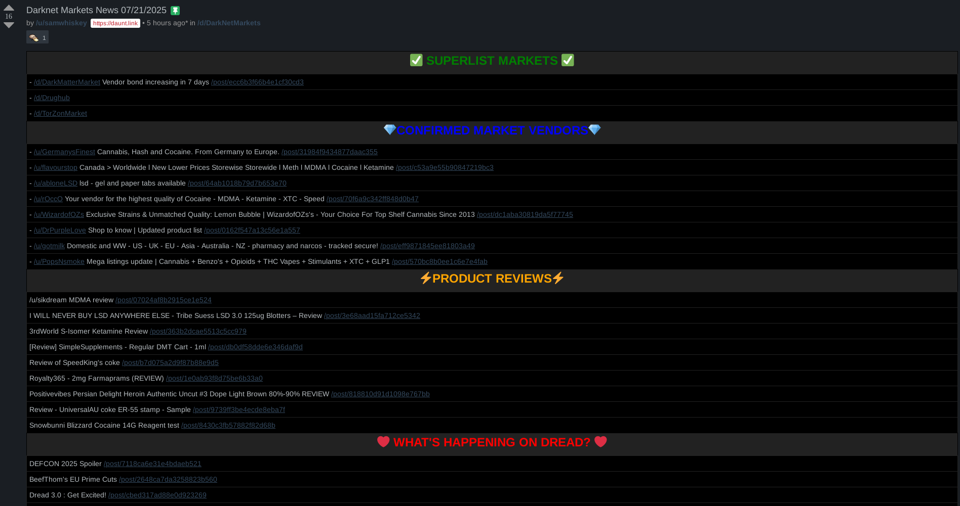 Dread Thread: http://dreadytofatroptsdj6io7l3xptbet6onoyno2yv7jicoxknyazubrad[.onion/post/08b5e7579c5d7df8cf6b