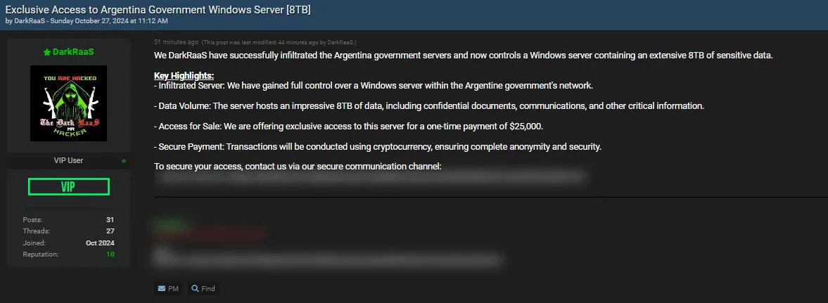 DarkRaaS Allegedly is Selling Access to an Argentina Government Windows Server