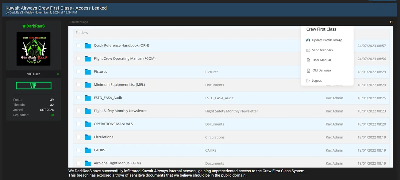 DarkRaaS Has Allegedly Leaked Access to Kuwait Airways