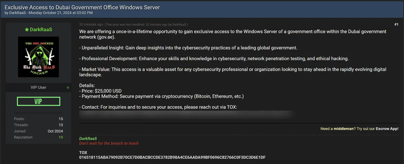 DarkRaaS is Allegedly Selling Access to a Dubai Government Office Windows Server