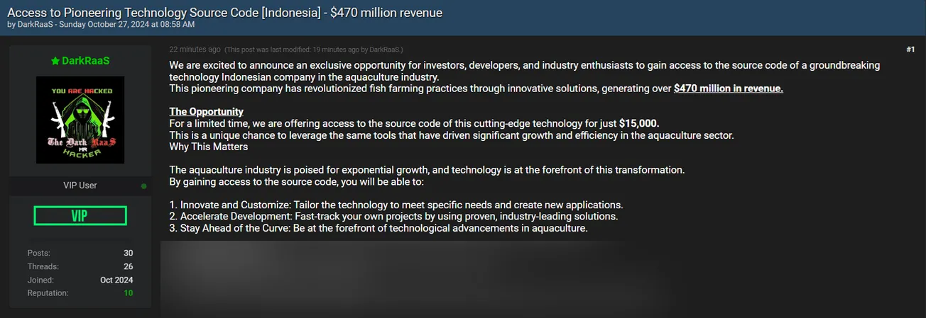 DarkRaaS is Allegedly Selling Access to an Unidentified Indonesian Company
