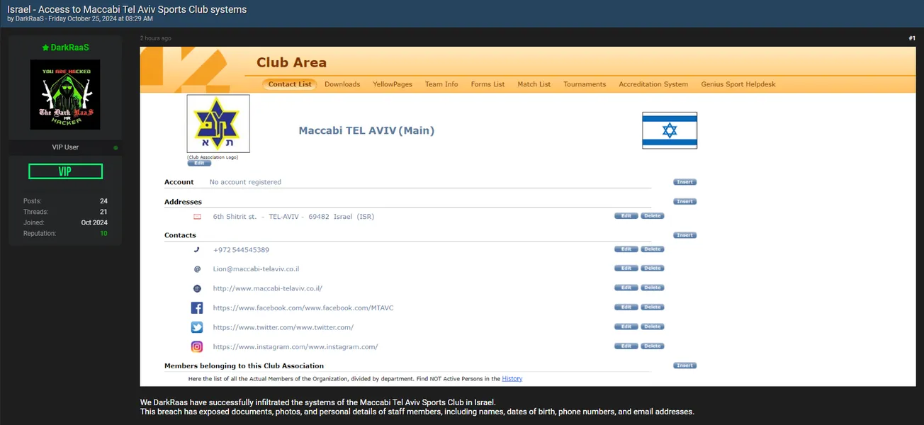DarkRaaS is Allegedly Selling Access to Maccabi Tel Aviv Sports Club