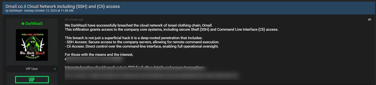 DarkRaaS is Allegedly Selling Access to Omall Fashion