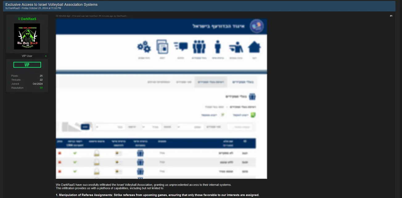 DarkRaaS is Allegedly Selling Full Access to Israel Volleyball Association