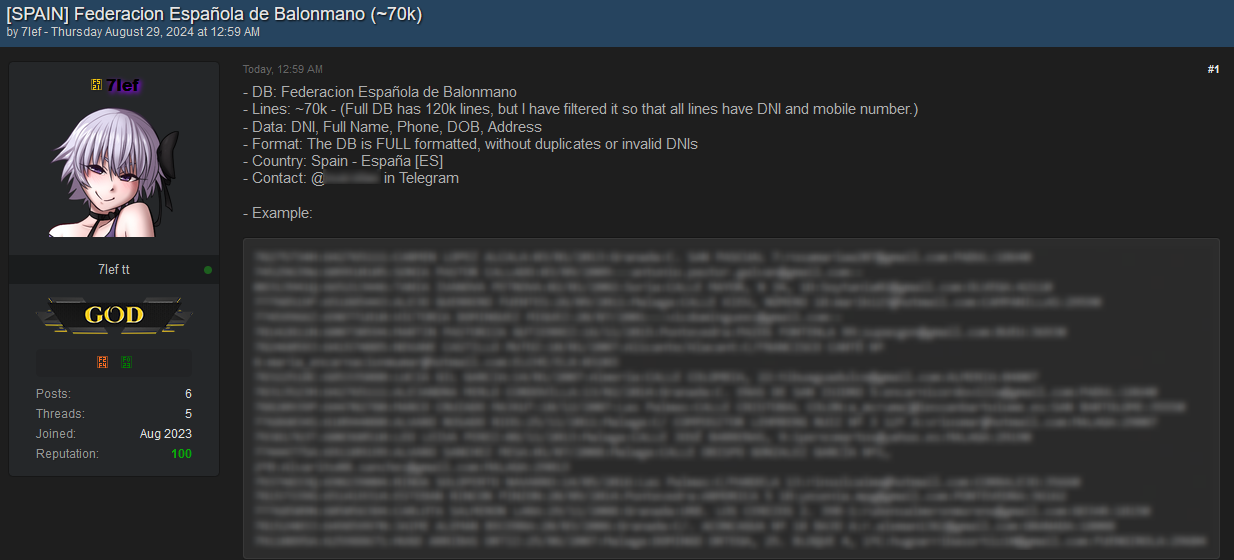 - Format: The DB is FULL formatted, without duplicates or invalid DNIs