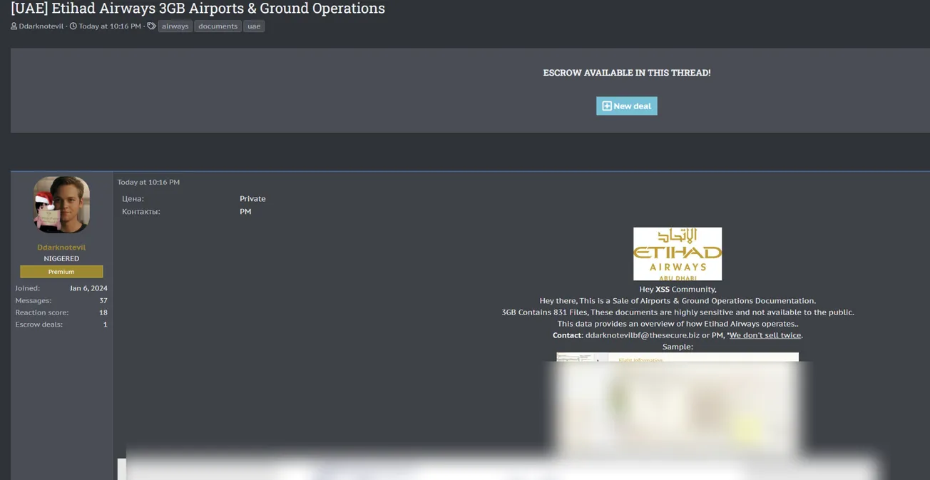 🚨 Title: Alleged sale of Etihad Airways Airports & Ground Operations Documentation