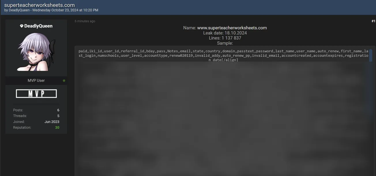 DeadlyQueen has Allegedly Leaked the Database of Super Teacher Worksheets