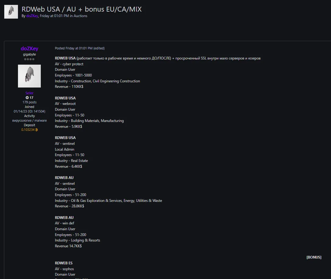 🚨 Title: Alleged sale of RDweb access to unidentified organizations in multiple countries