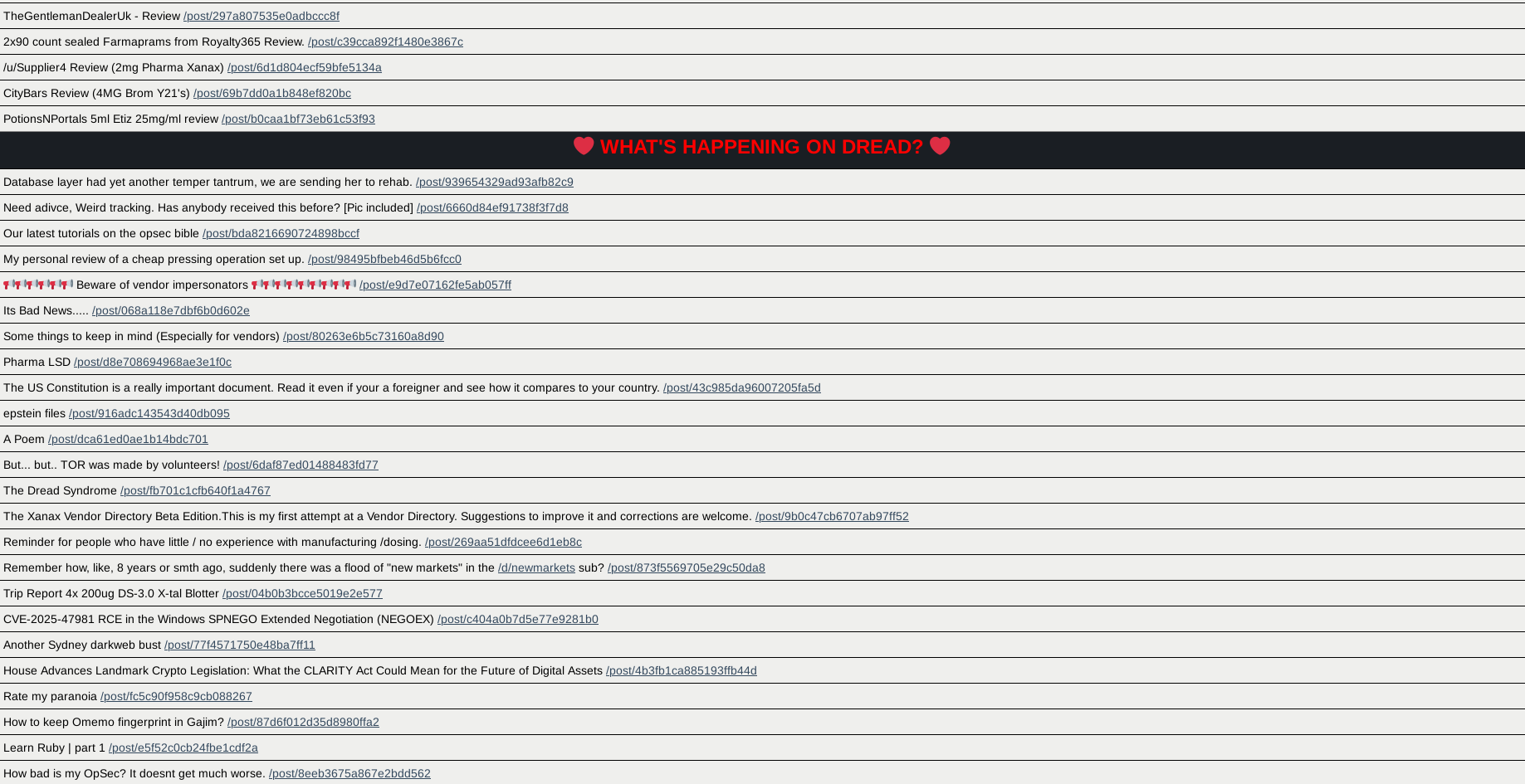Dread: http://dreadytofatroptsdj6io7l3xptbet6onoyno2yv7jicoxknyazubrad.onion/post/e1556d0acb0d2eac329e