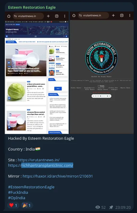 Esteem Restoration Eagle Defaced the Website of Vrutant News