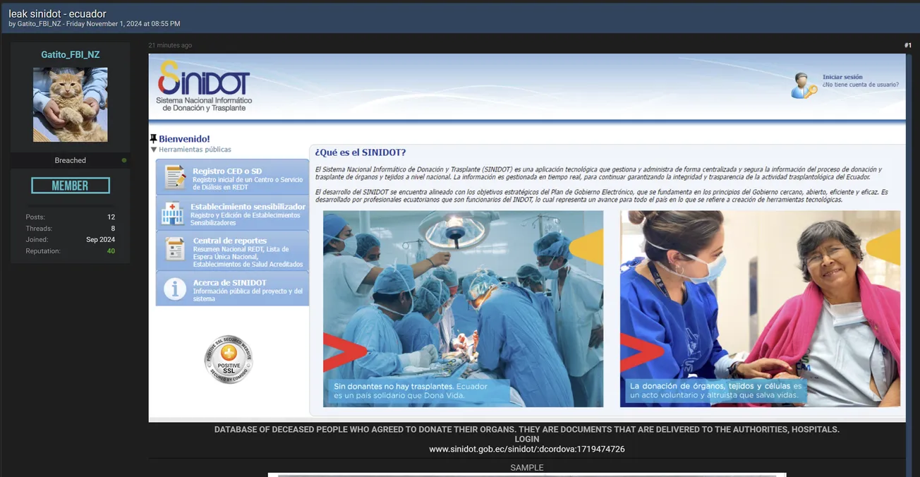 Gatito_FBI_NZ Has Allegedly Leaked Data of SINIDOT