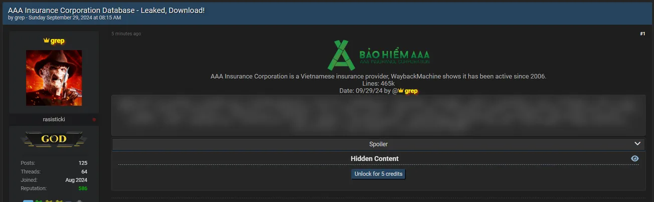 🚨 Title: Allegedly leaked the database of AAA Insurance Binh Duong