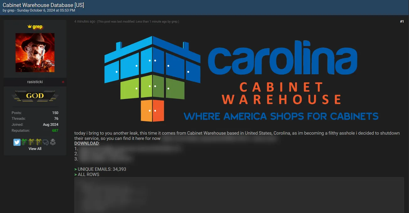 grep Allegedly Leaked the Database of Carolina Cabinet Warehouse