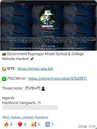 HACKTIVIST VANGUARD Defaced the Website of Government Rupnagar Model School & College
