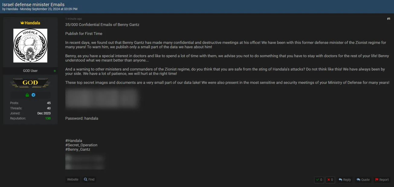 Handala Allegedly Leaked Israel Defense Minister Emails