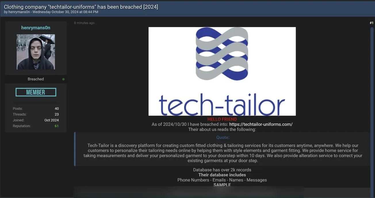 henrymans0n Allegedly Leaked Data of Tech-Tailor
