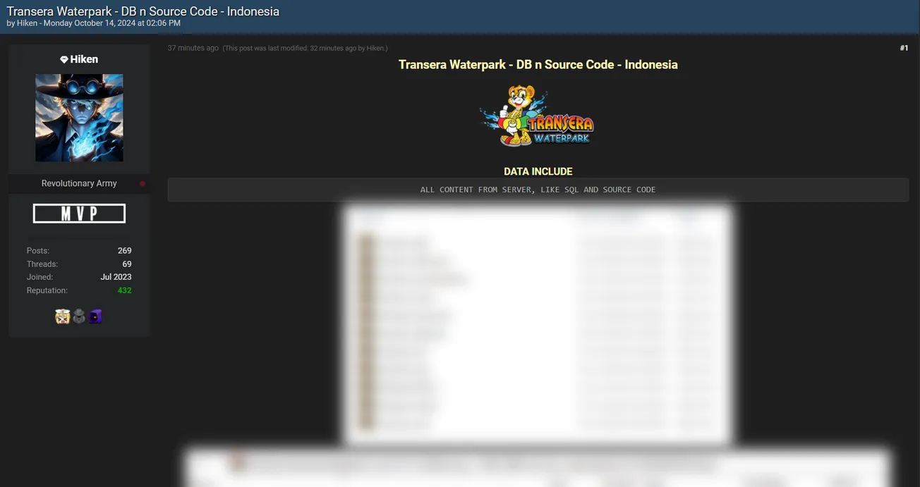 Hiken Allegedly Leaked the Transera Waterpark Database