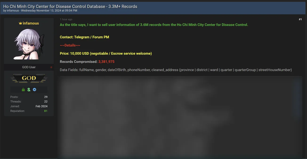 infamous is Allegedly Selling Data of Ho Chi Minh City Center for Disease Control