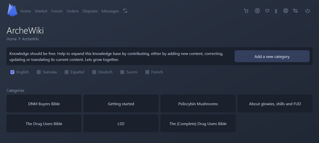 The ArcheWiki is there to assist you with Harm Reduction, How to Get Started, and steps you should take before buying on any Darknet Market.