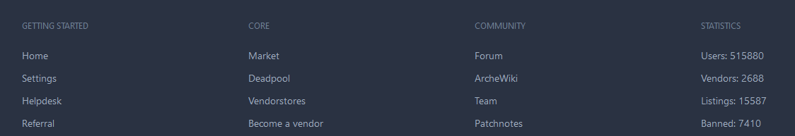 Finally, the footer of the website, which contains statistics from the Market!