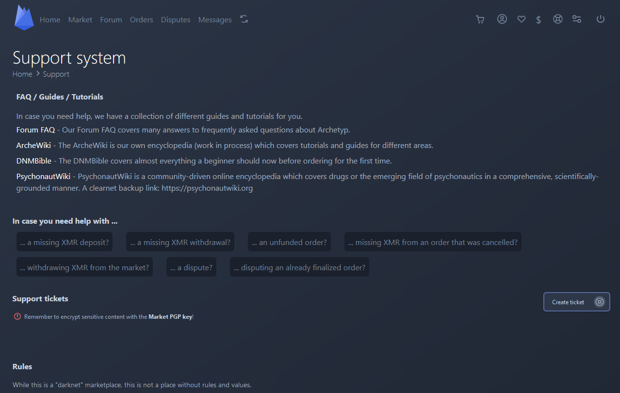 Need Help? The below screenshots are the Support System and The Team working behind the scenes of Archetyp Market!