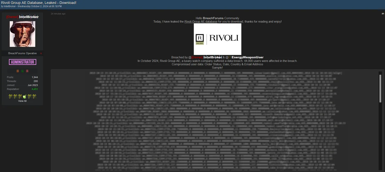 IntelBroker and EnergyWeaponUser have Allegedly Leaked the Database of Rivoli Group