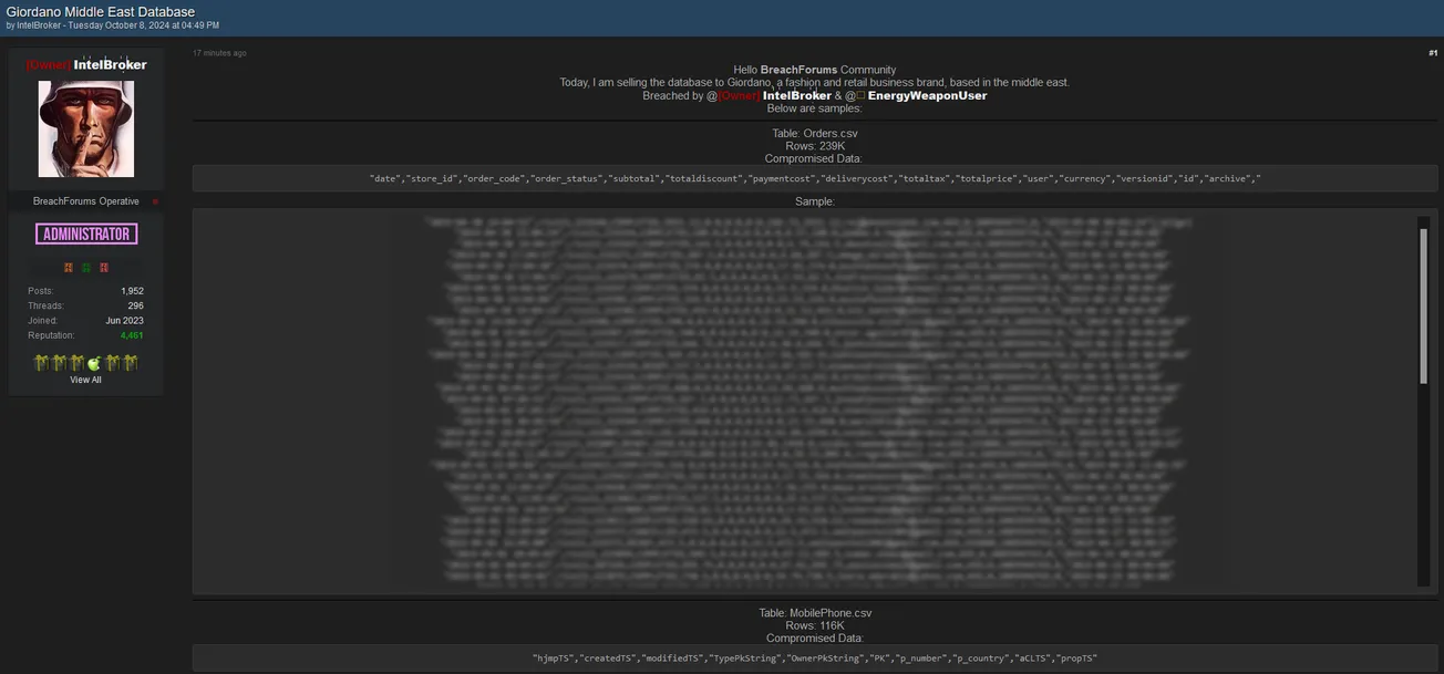 IntelBroker and EnergyWeaponUser is Allegedly Selling the Giordano Middle East Database