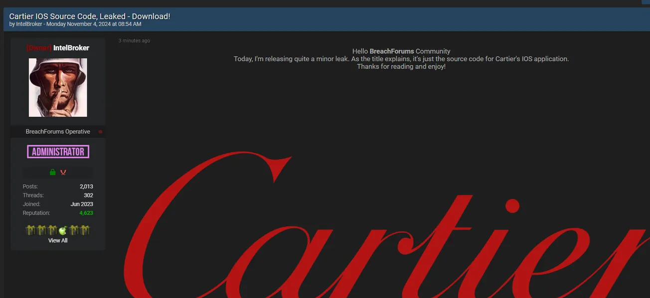 IntelBroker Has Allegedly Leaked Source Code of Cartier
