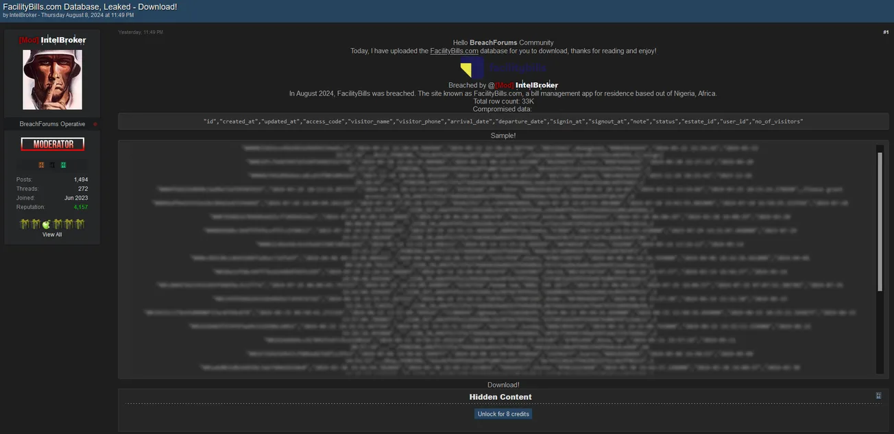 IntelBroker Has Allegedly Leaked the Database of Facility Bills