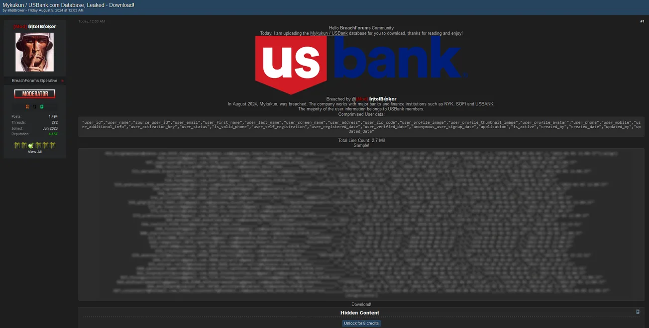 IntelBroker Has Allegedly Leaked the Mykukun / USBank Database