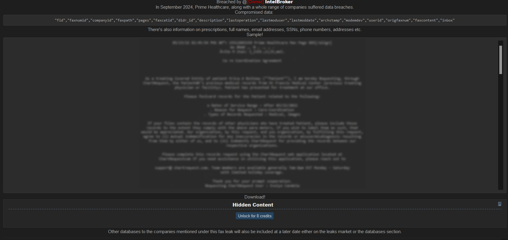 In September 2024, Prime Healthcare, along with a whole range of companies, suffered data breaches.