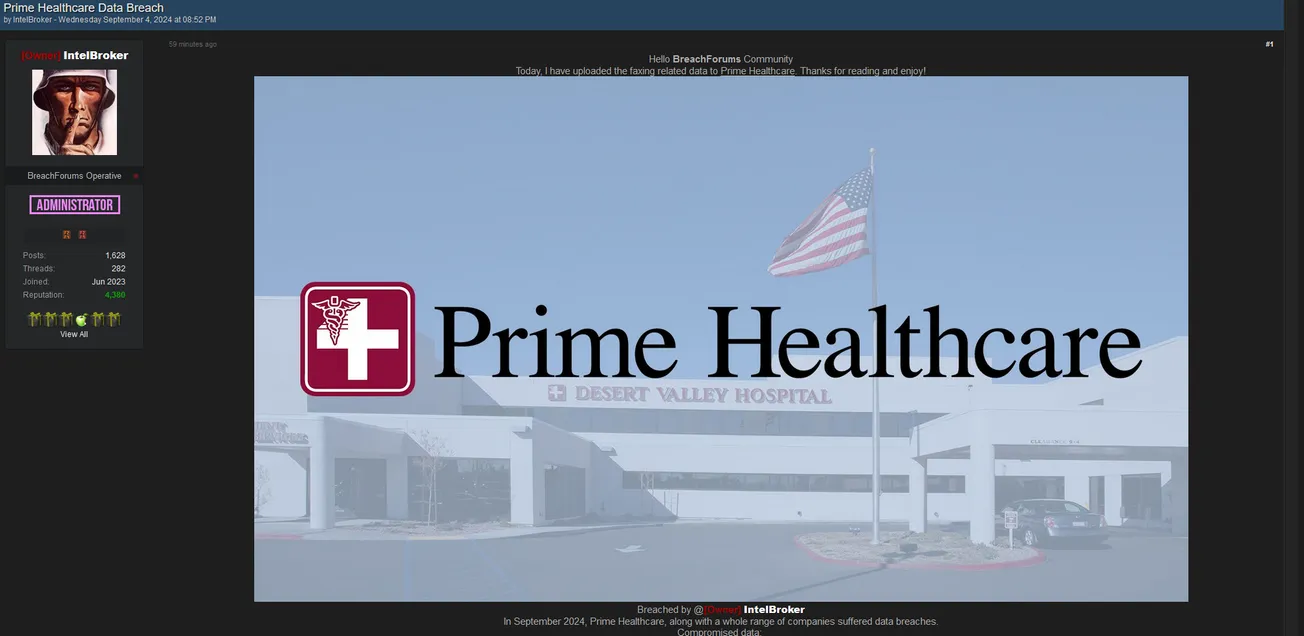 In September 2024, Prime Healthcare, along with a whole range of companies, suffered data breaches.