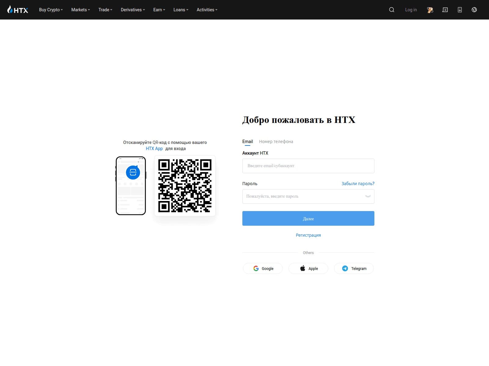 - Page Title: HTX Вход — Авторизация аккаунта | HTX Login & Sign In