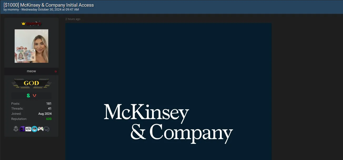 🚨 Title: Alleged Root access sale of McKinsey & Company