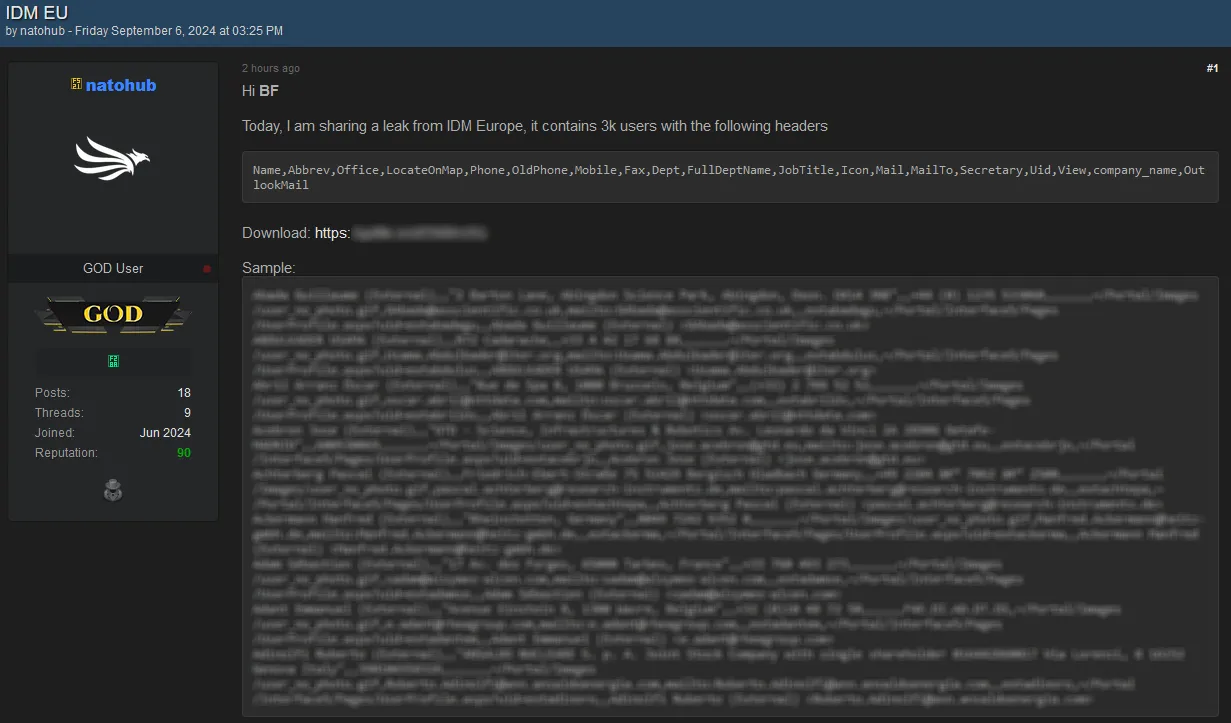 Today, I am sharing a leak from IDM Europe, it contains 3k users with the following headers: