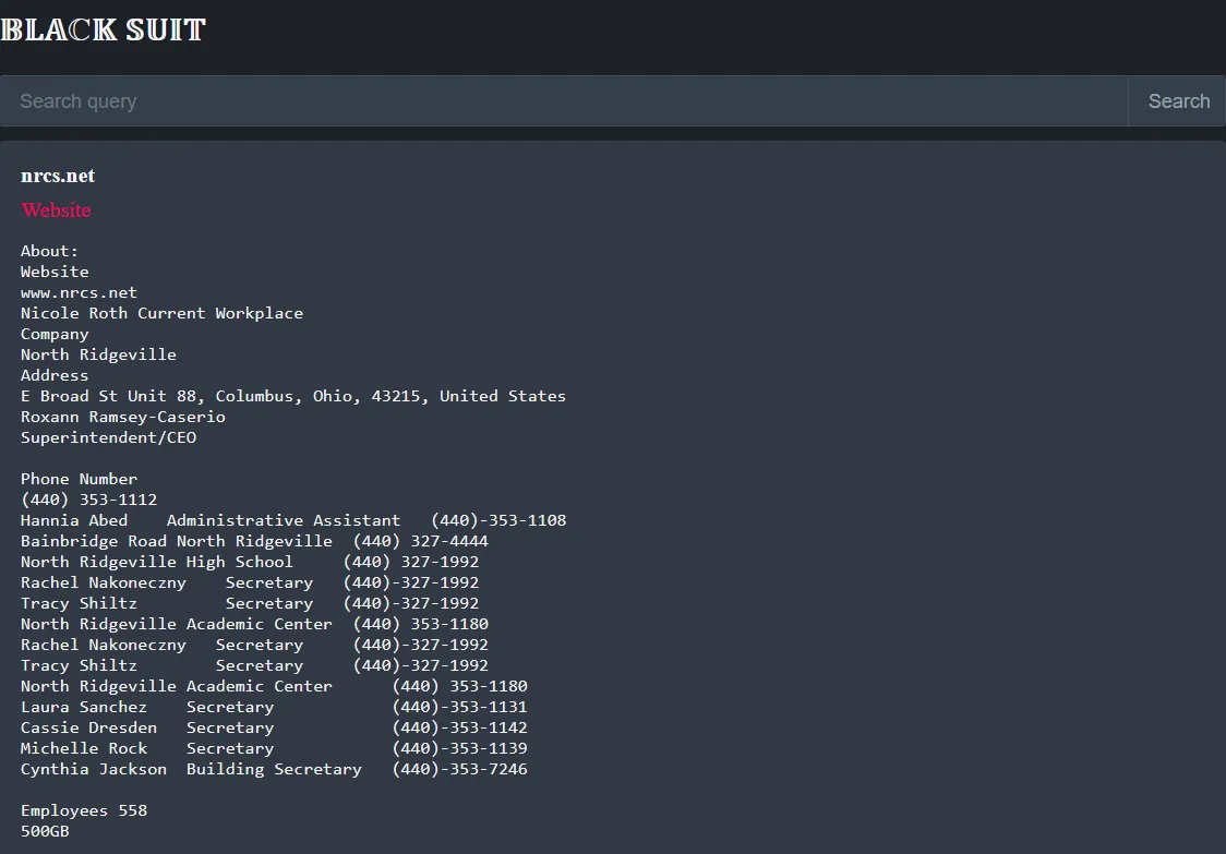 North Ridgeville City School District Has Been Claimed a Victim to BLACK SUIT Ransomware