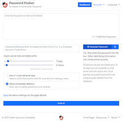 - Easy-to-install: Host your own via Docker, a cloud service or just use pwpush.com