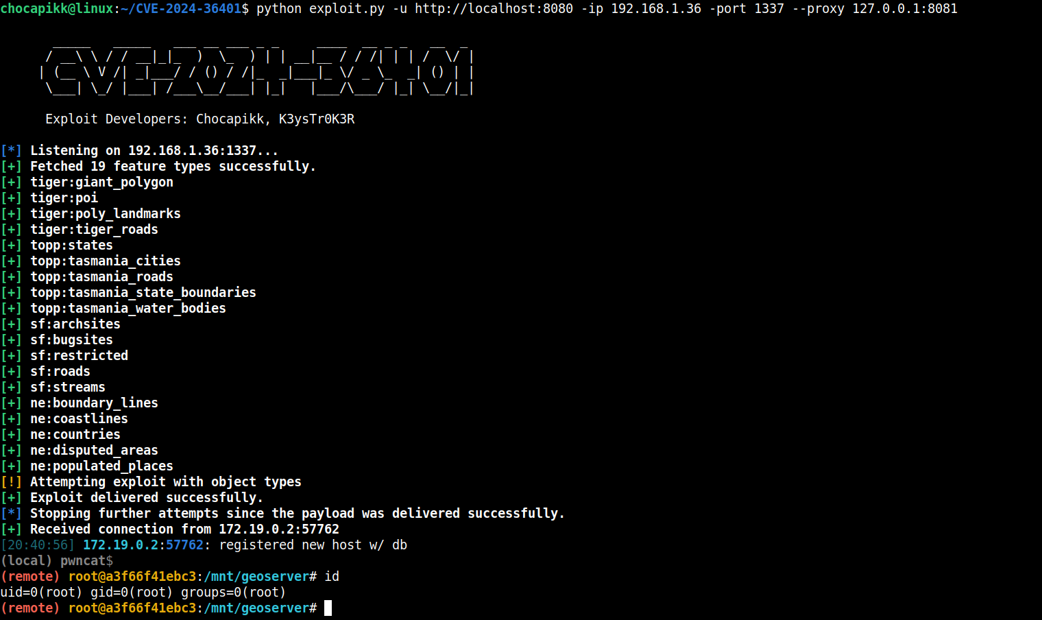 Exploiting this vulnerability, an attacker can send a POST request containing a malicious XPath expression, which can result in arbitrary command execution as root on the system running GeoServer.