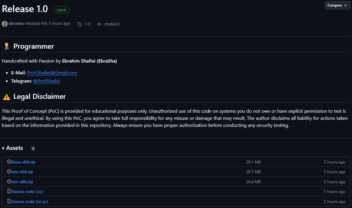 To download the executable versions of this PoC, please visit the official Releases page on GitHub. This will allow you to obtain the compiled version ready for use: