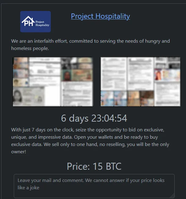 Ransom Price: 15 BTC or $876.949.20 at time of this post. Samples include drivers licenses, passports, etc.