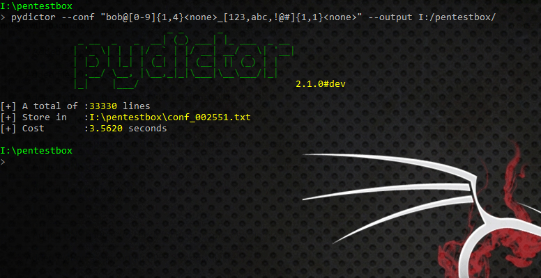 All of pydictor can generating wordlist