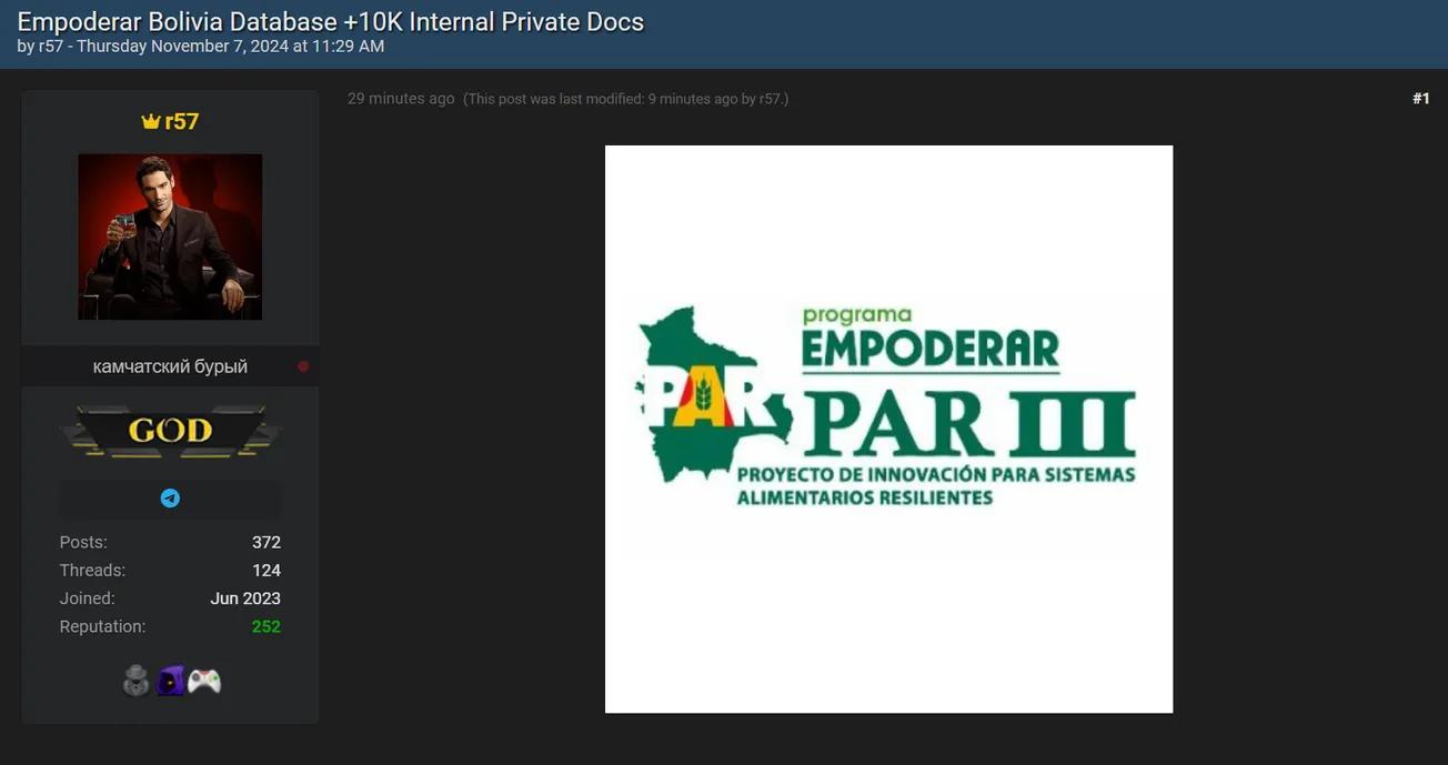 r57 is Allegedly Selling the Database of Empower Program Bolivia