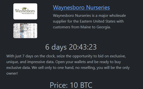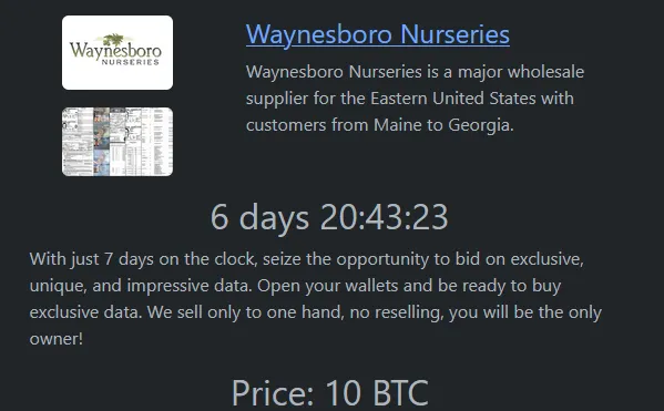 Waynesboro Nurseries is a company that specializes in growing and supplying a wide variety of plants, trees, shrubs, and other landscaping materials. They typically cater to landscapers, garden centers, and other businesses that require large quantities of plant materials. The company has been in operation for many years and is known for its high-quality products and services, often serving a regional market.
