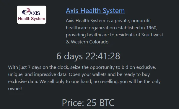 🚨 Title: Axis Health System falls victim to RHYSIDA Ransomware
