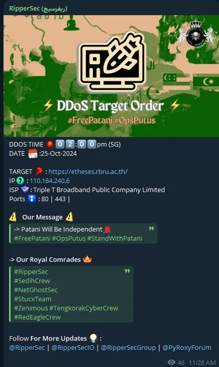 RipperSec Targeted the Website of Rambhai Barni Rajabhat University