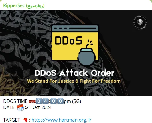 RipperSec Targeted the Website of Shalom Hartman Institute
